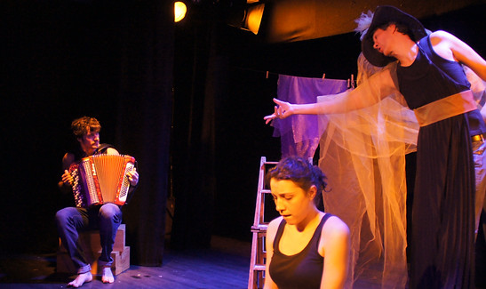 Ainsi, les quatre comédiens-musiciens, leurs instruments (violon, violoncelle, accordéon), et leurs chansons yiddish, russes, tziganes donnent vie à l’ironie, la violence et la tendresse de ce texte, faisant entrer le spectateur dans un monde où la folie n'est jamais très loin..